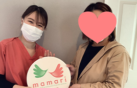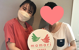 ステップアップするにあたり、心理的金銭的な不安があったなかでの不妊治療のなかで、mamariさんのサポートやアドバイスが心の支えになっていました。妊娠してからも、つわりや頭痛、お腹の張り等、週数や体調に応じて寄り添っていただきとても感謝しています。出産後、また次も...と考えた際にまた頼りにしたいそんな場所です。