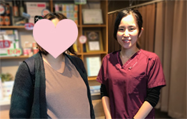 施術をしながら、食事や栄養面で今の時期は何を取ったら良いのか等細かく教えて頂き、食生活の改善にとても 役立ちました。また気になる冷えが改善されました。双角子宮のため血流を良くしないといけなかったので、実際に効果がありとても嬉しかったです。