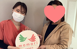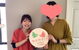 ステップアップするにあたり、心理的金銭的な不安があったなかでの不妊治療のなかで、mamariさんのサポートやアドバイスが心の支えになっていました。妊娠してからも、つわりや頭痛、お腹の張り等、週数や体調に応じて寄り添っていただきとても感謝しています。出産後、また次も...と考えた際にまた頼りにしたいそんな場所です。